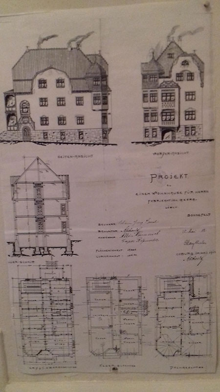 In der Schützenstraße Nr. 2 befand sich bereits ein Dorfhaus, das er Anfang des 20. Jahrhunderts kaufte. 1910 hatte er den jungen Architekten August Eckhart (1877-1960) beauftragt, der seine Nichte geheiratet hatte, um vorläufige Entwürfe zu machen und auch zu ziehen das bestehende Dorfhaus hinunter.