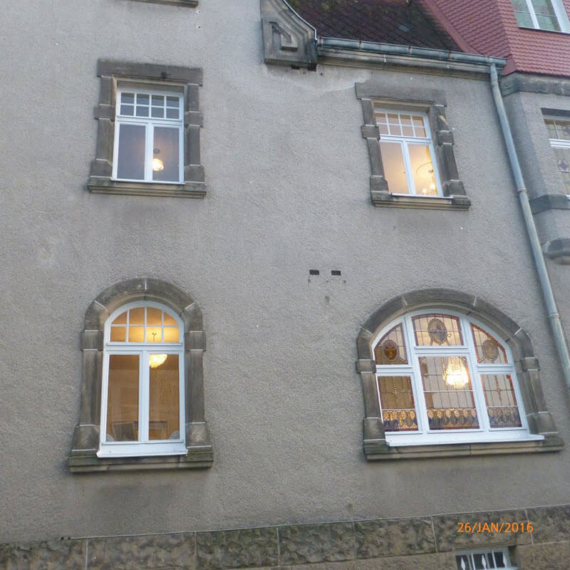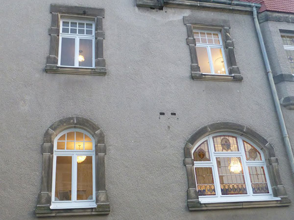 First floor apartment (Erste Obergeschoss) is a replica of the entrance floor with lovely stained glass windows to the front and to the side.